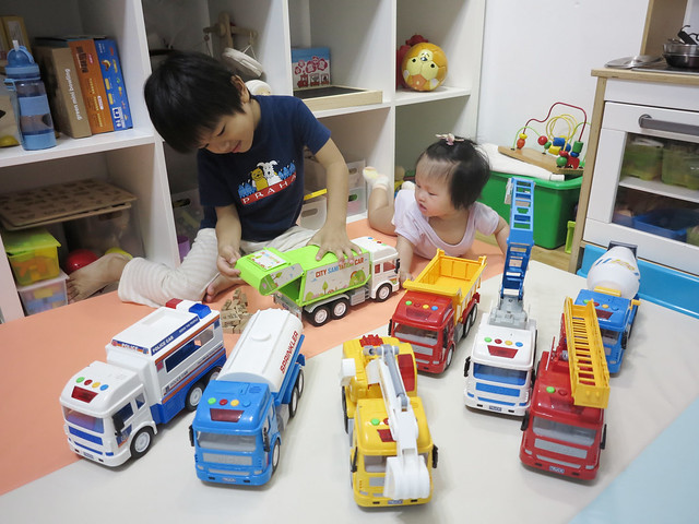 不僅大扭力輕推就可跑很遠,再加上有各種不同擬真音效一起操作,讓孩子們可以花一個上午都在這些車子裡打轉