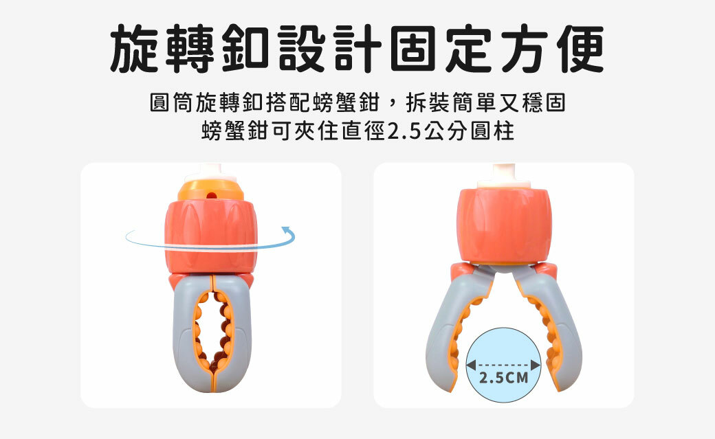 旋轉螃蟹鉗設計,拆裝簡單穩固