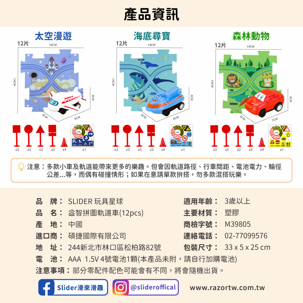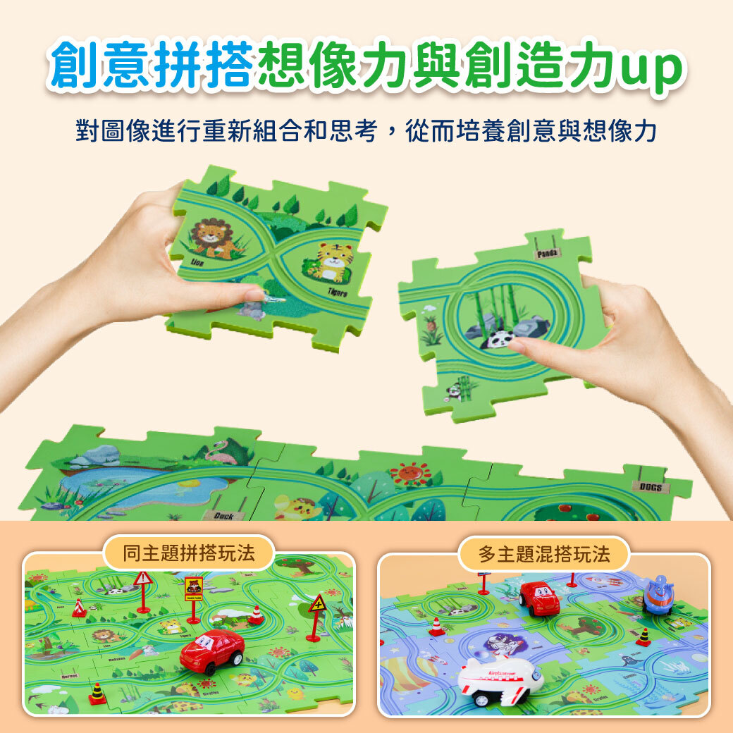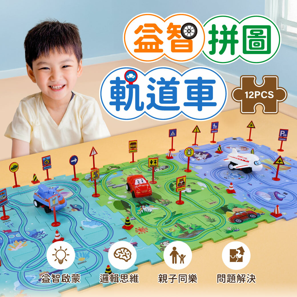 套裝:12 個拼圖、12 個路標、1 輛汽車