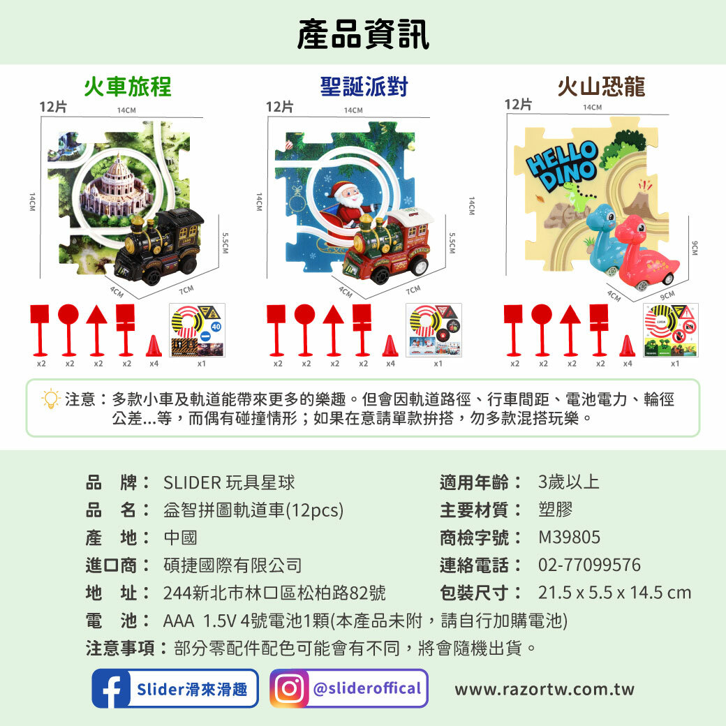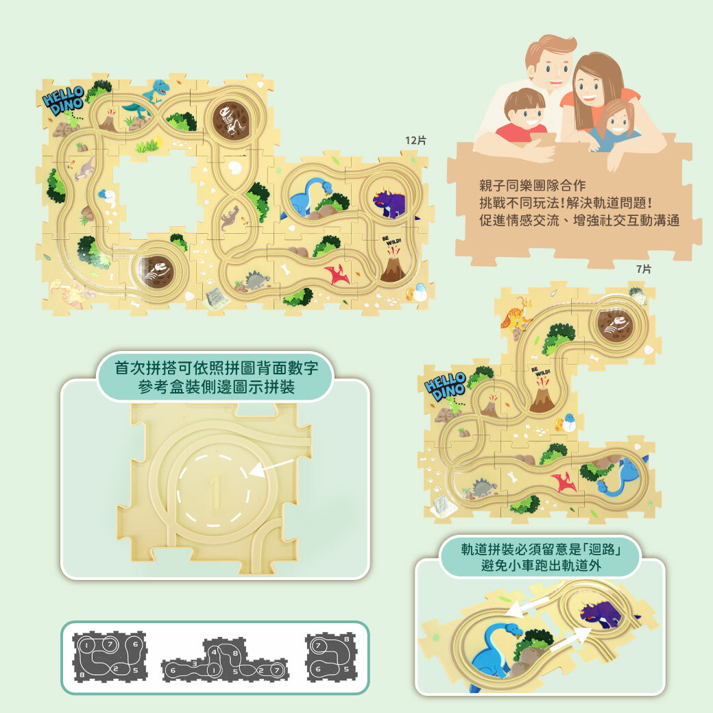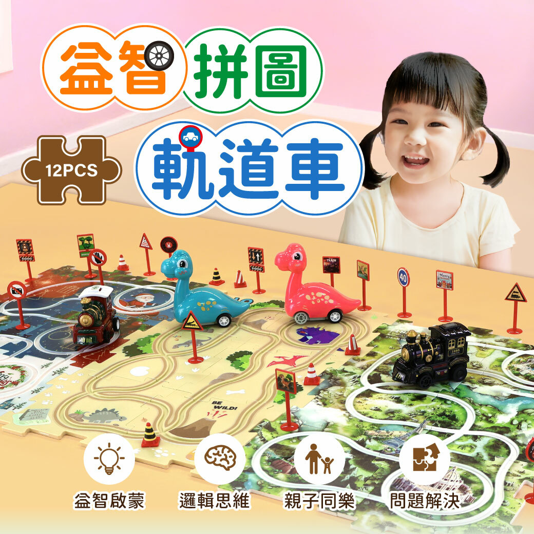 套裝:12 個拼圖、12 個路標、1 輛汽車